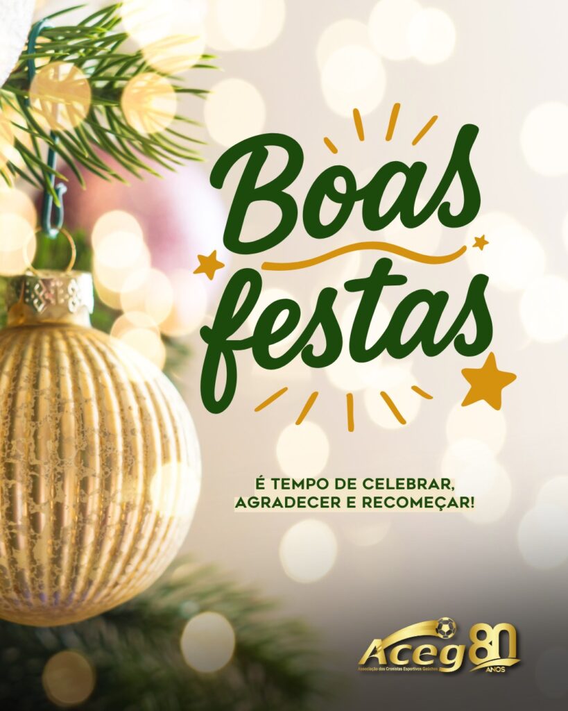 A Associação dos Cronistas Esportivos Gaúchos (ACEG) deseja a todos os associados, parceiros, atletas, dirigentes e profissionais da comunicação um período de boas festas, marcado pela paz, pela união e pela esperança em dias ainda melhores. Que este momento de celebração seja também de reflexão e renovação, fortalecendo os laços que unem o esporte e o jornalismo em nosso estado. A ACEG agradece pela parceria e confiança ao longo do ano e renova os votos de saúde, sucesso e realizações para o novo ciclo que se inicia. Boas festas e um excelente ano novo a todos!